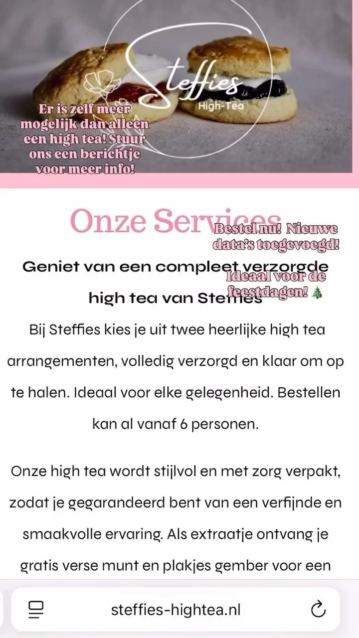 15 jaar geleden ontdekte Stephanie haar passie voor het verzorgen van high tea’s. Door de jaren heen bleef het kriebelen om opnieuw te beginnen — en nu is het zover. Samen met haar inmiddels volwassen kinderen blaast ze Steffies High Tea nieuw leven in: een echt familiebedrijfje vol liefde en smaak.